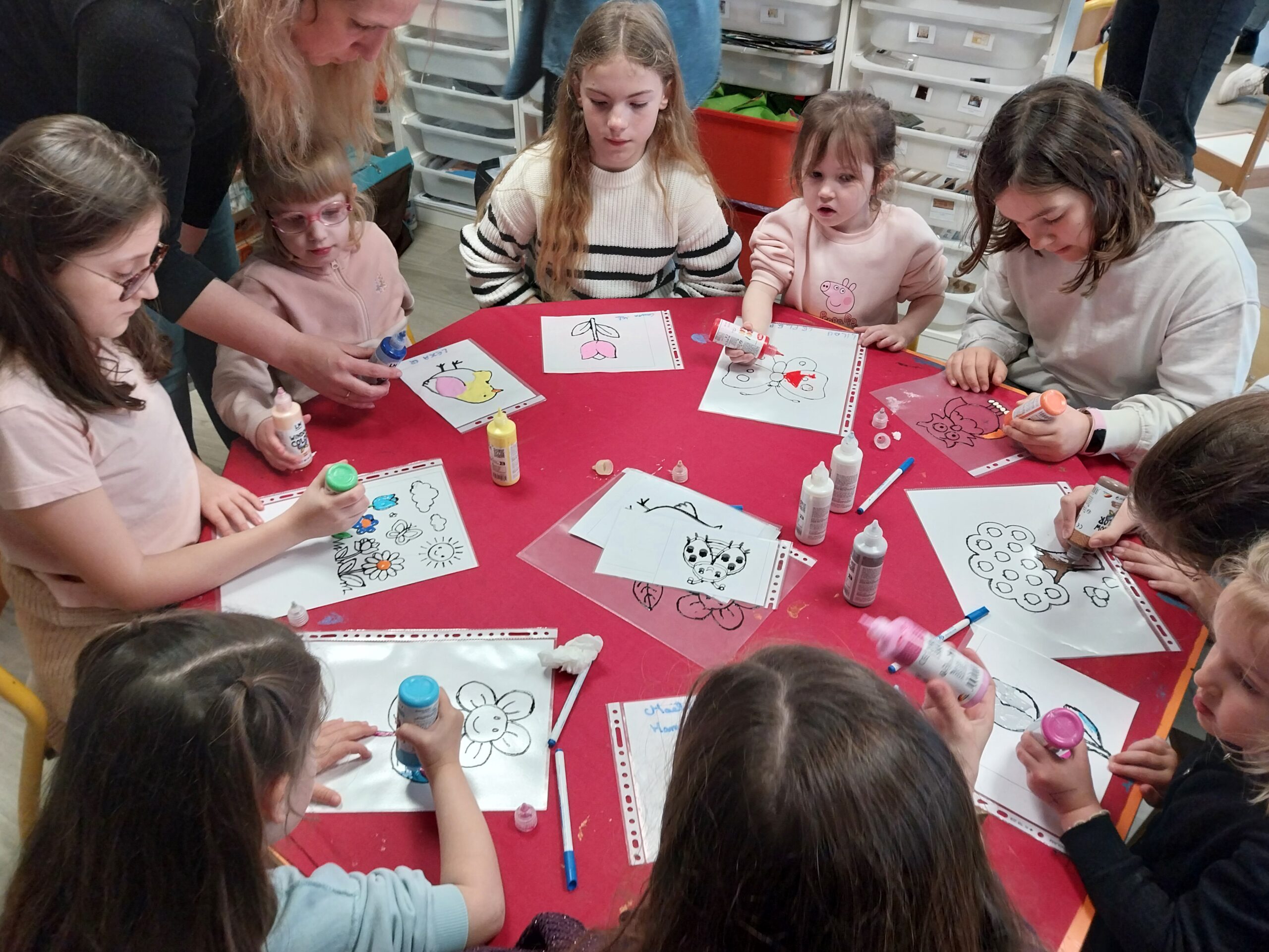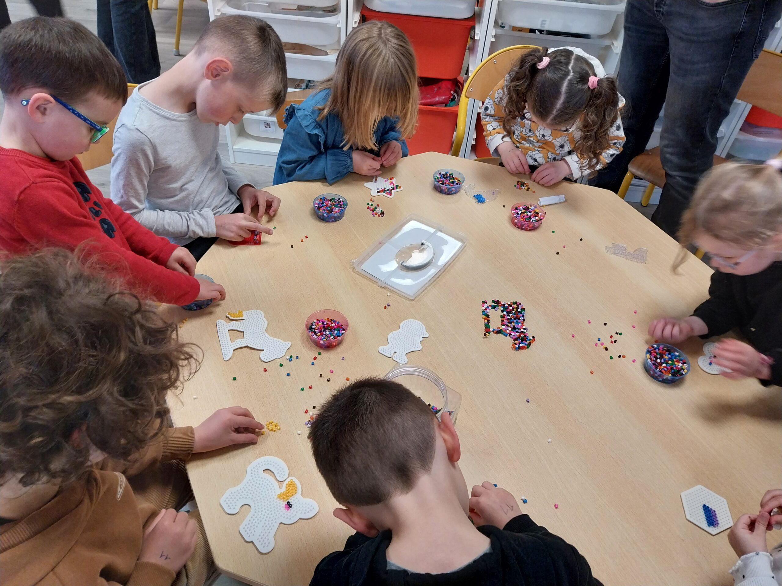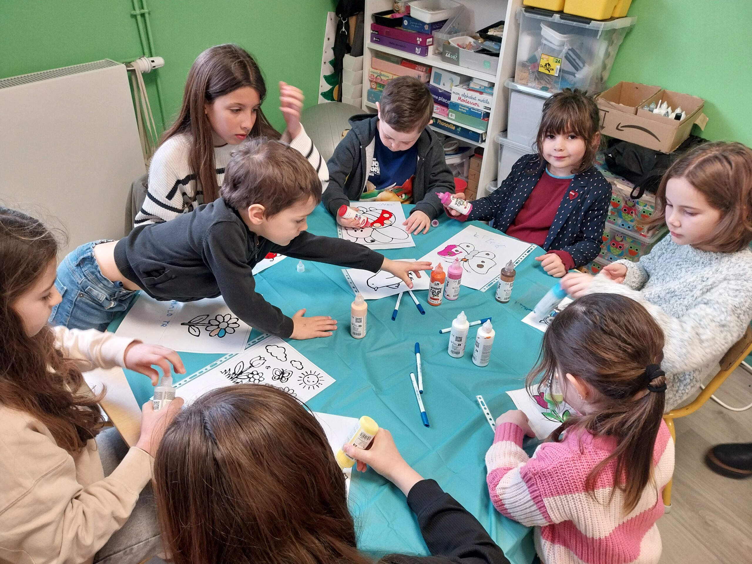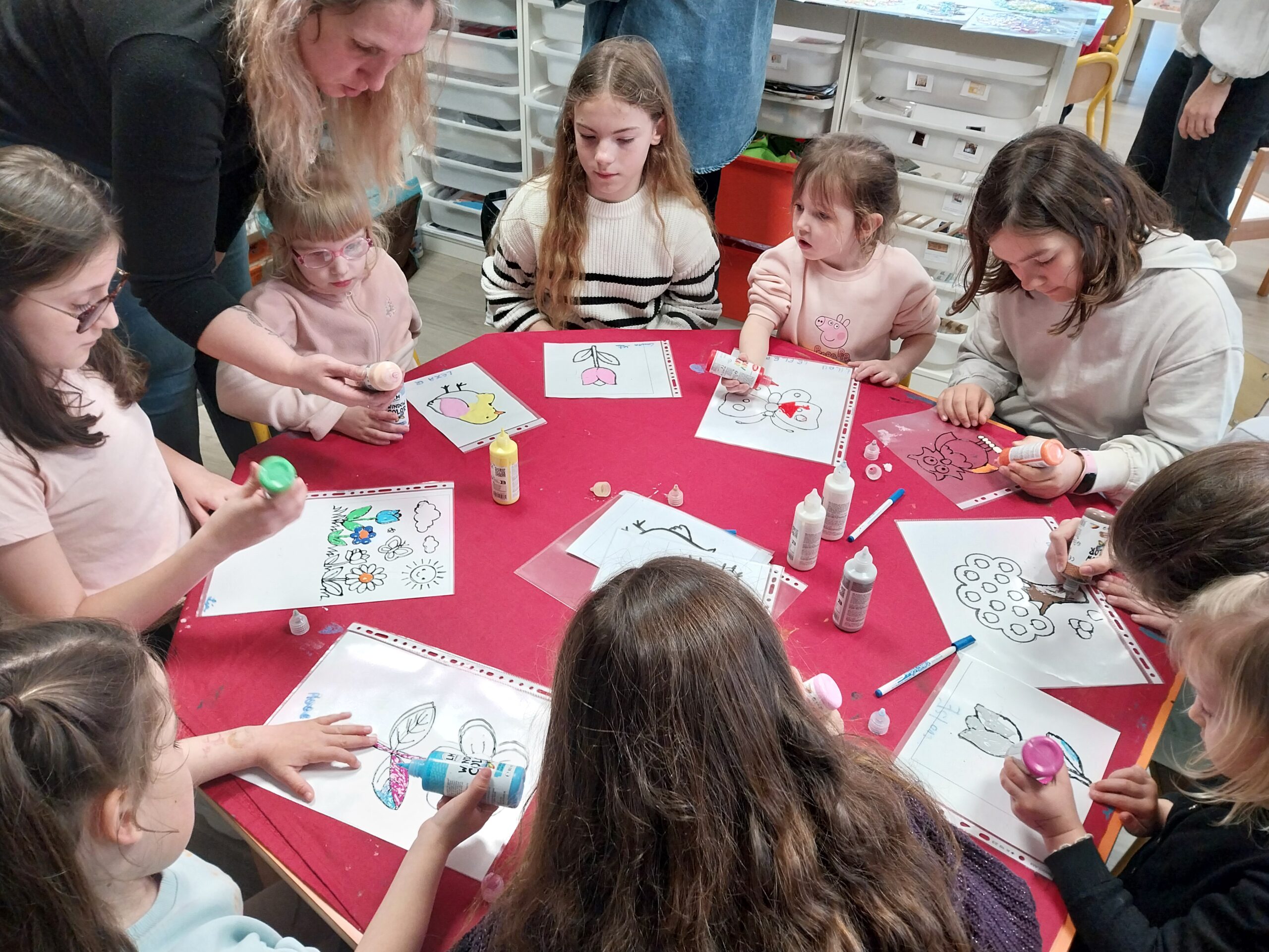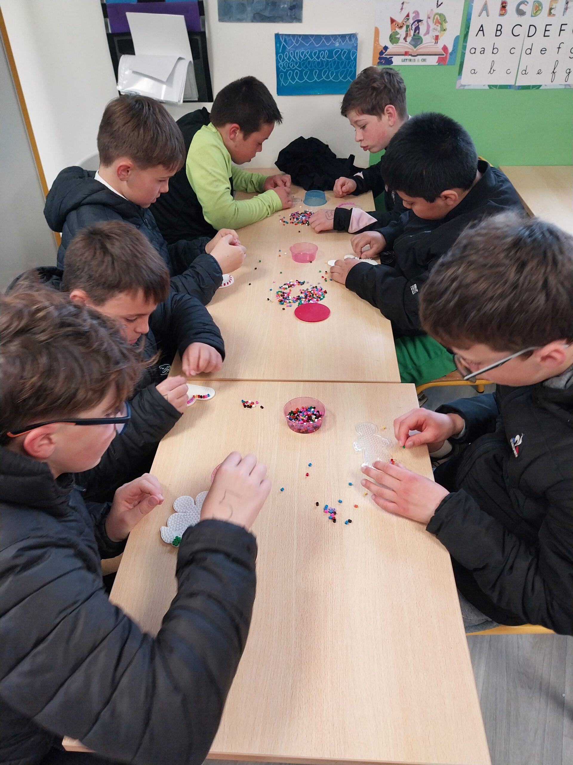 Les élèves ont ainsi pu s’initier à de nombreuses activités sportives comme le yoga, le football, le handball, le rugby, le karaté, la pétanque, le mölkky ou encore un parcours de vélo. Des ateliers créatifs étaient également proposés : broderie, couture, vannerie, bricolage, peinture, art floral, atelier laine ou encore réalisation de perles à repasser et de window colors dans le cadre d’un beau moment de tutorat entre les élèves de maternelle et les CM.